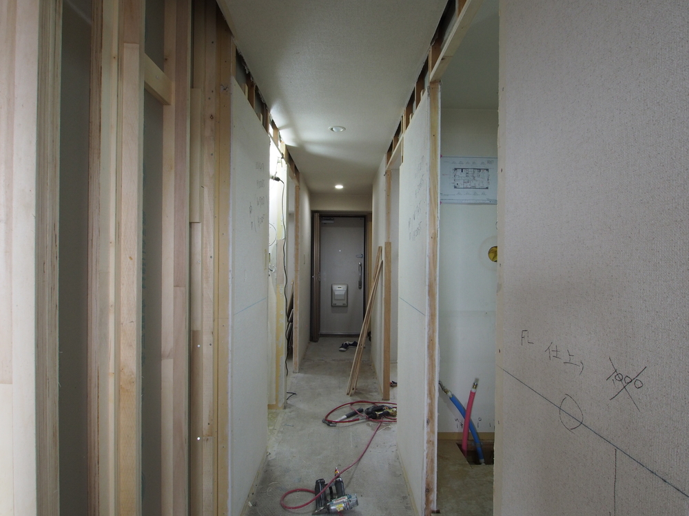 廊下の施工中