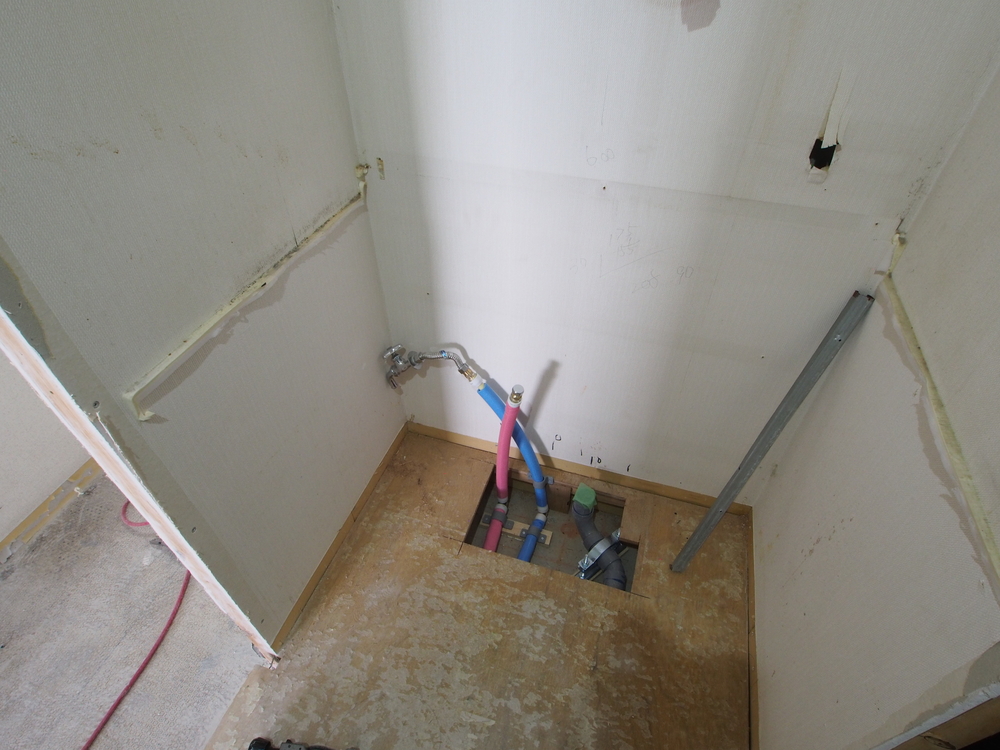 洗面室の施工中