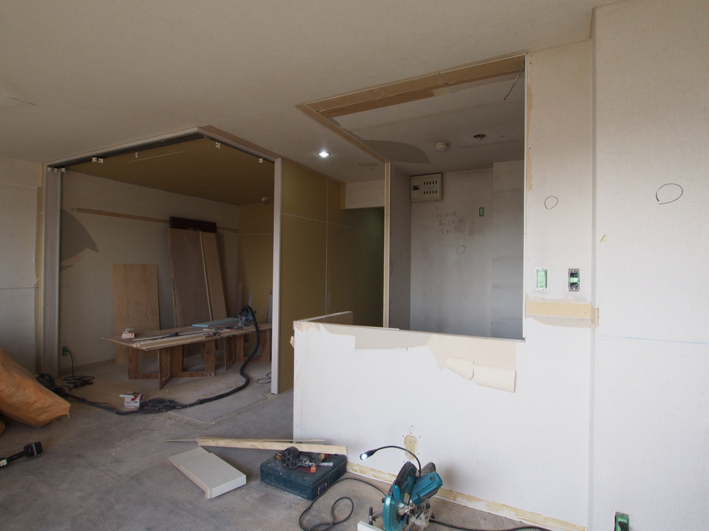 リビングの施工中