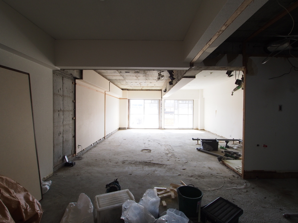 廊下の施工中