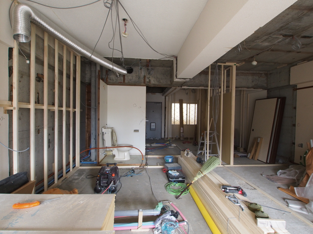 キッチンスペースの施工中