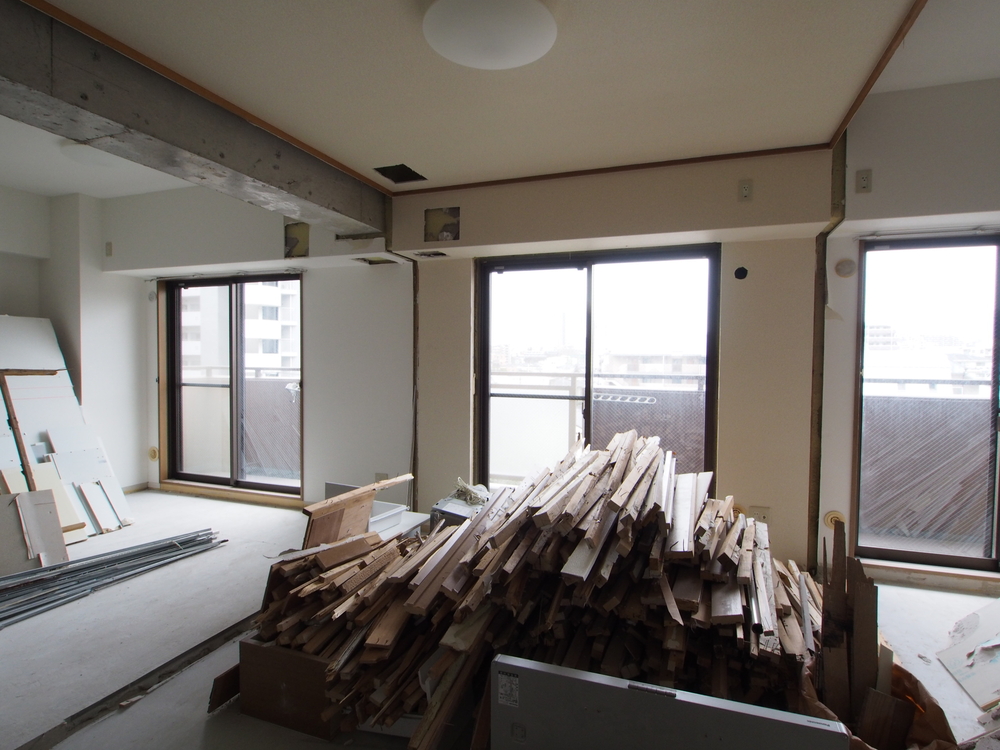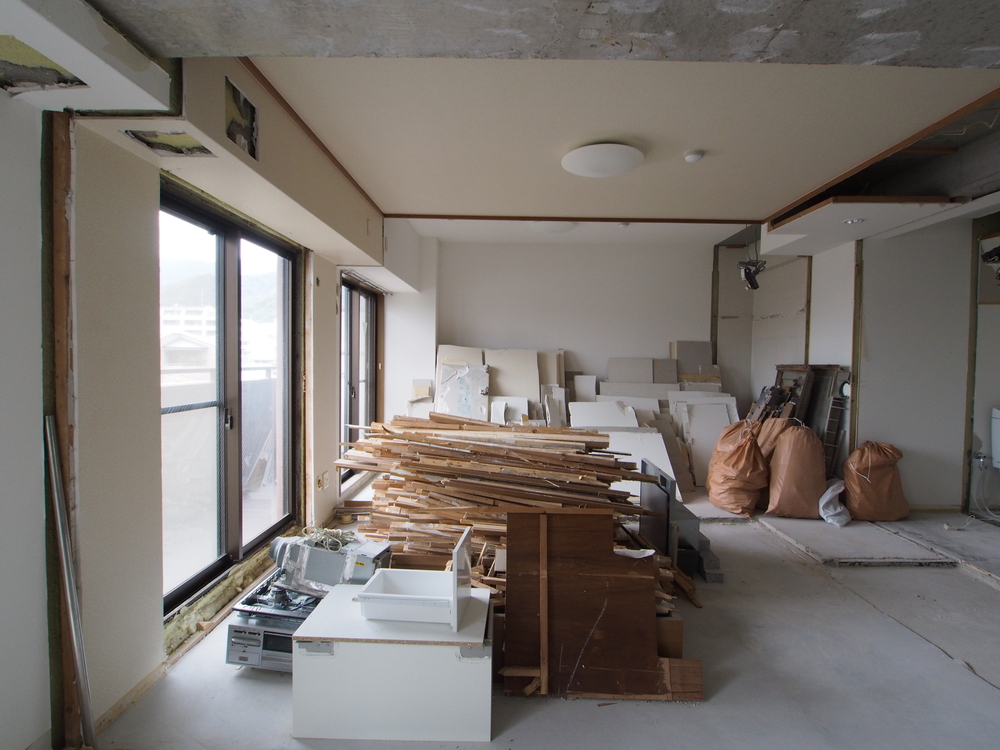 リビングの施工中