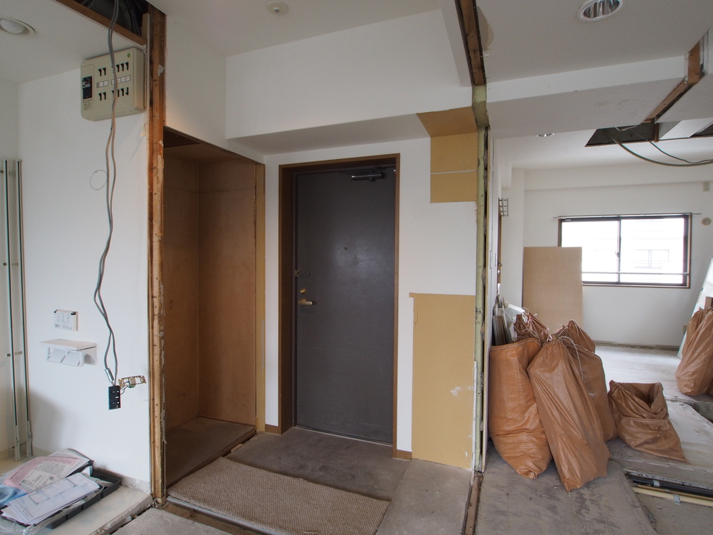 玄関の施工中
