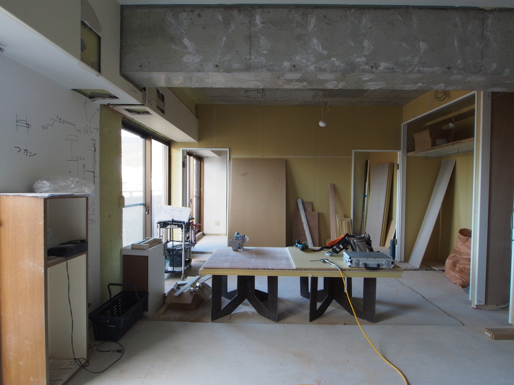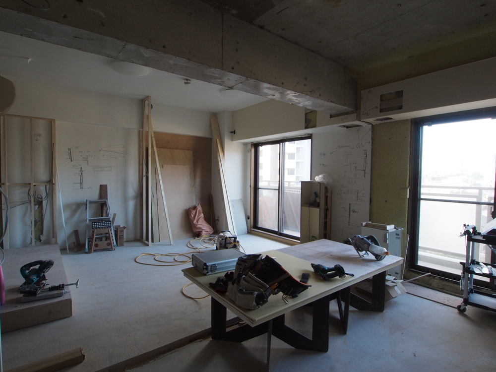 リビングの施工中