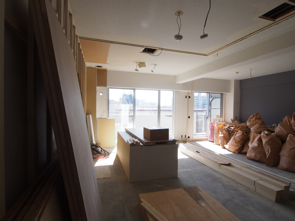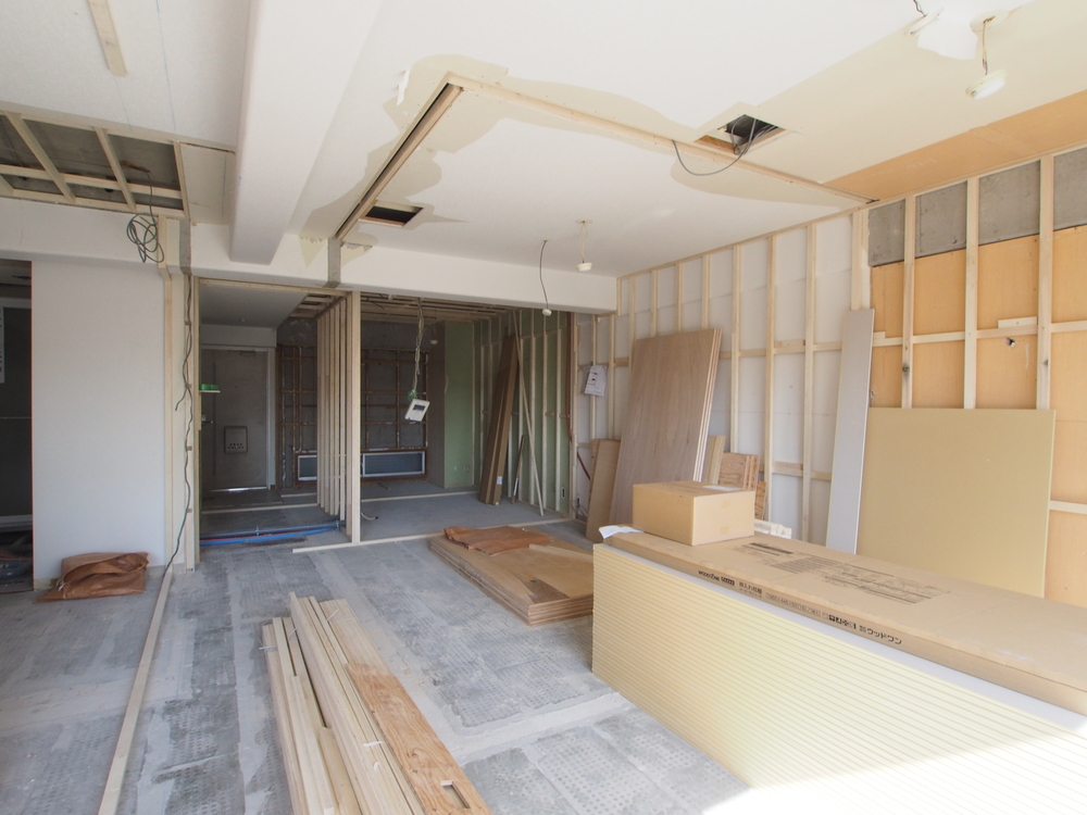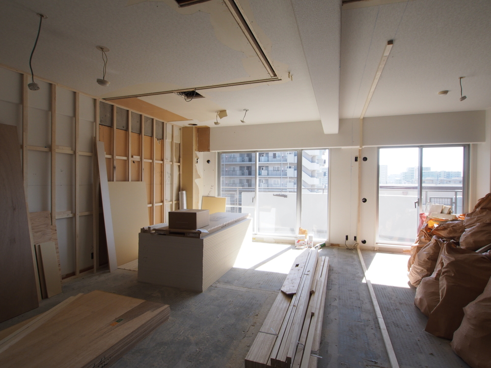 リビングの施工中
