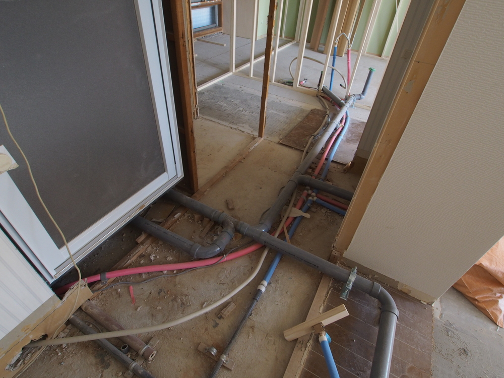 洗面室の施工中