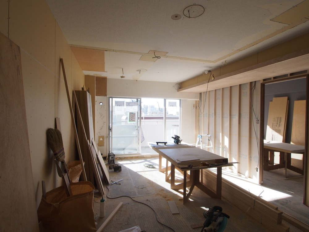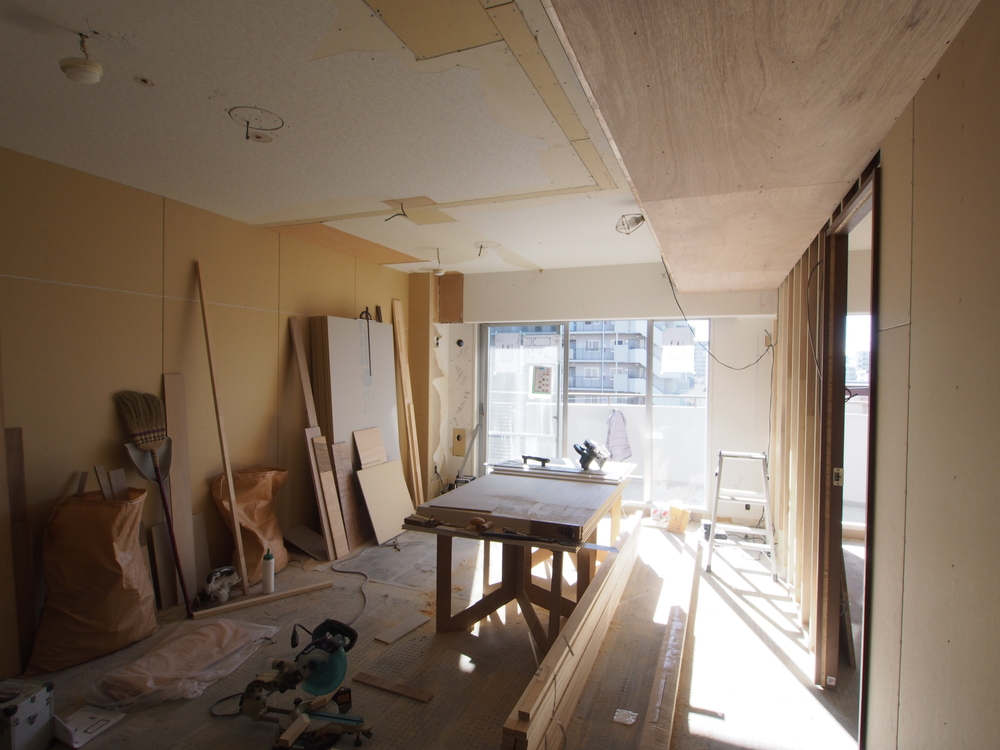 リビングの施工中
