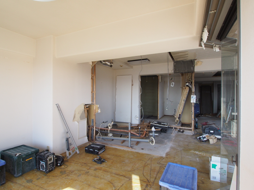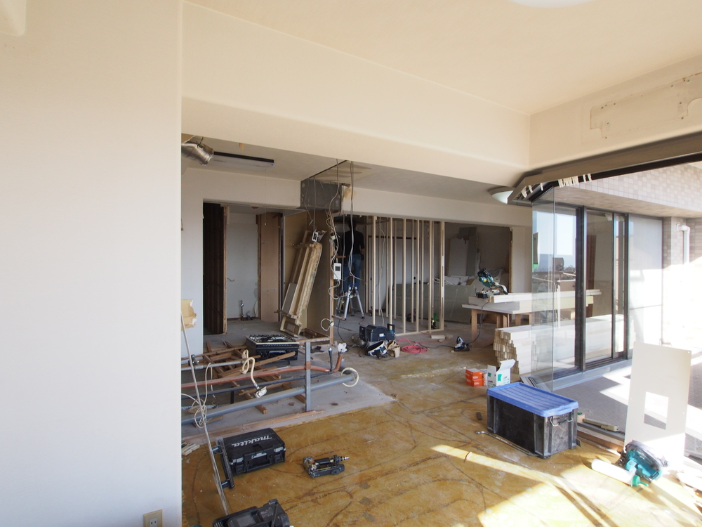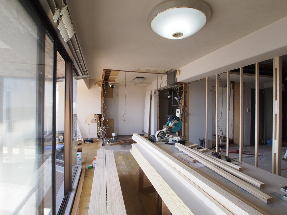 リビングの施工中