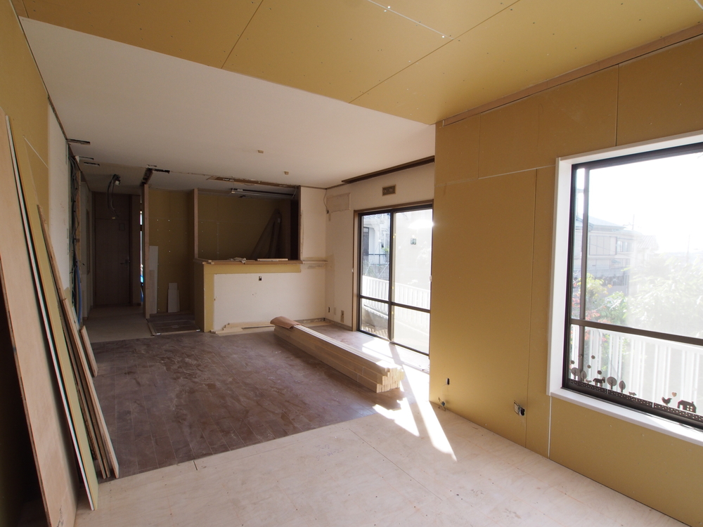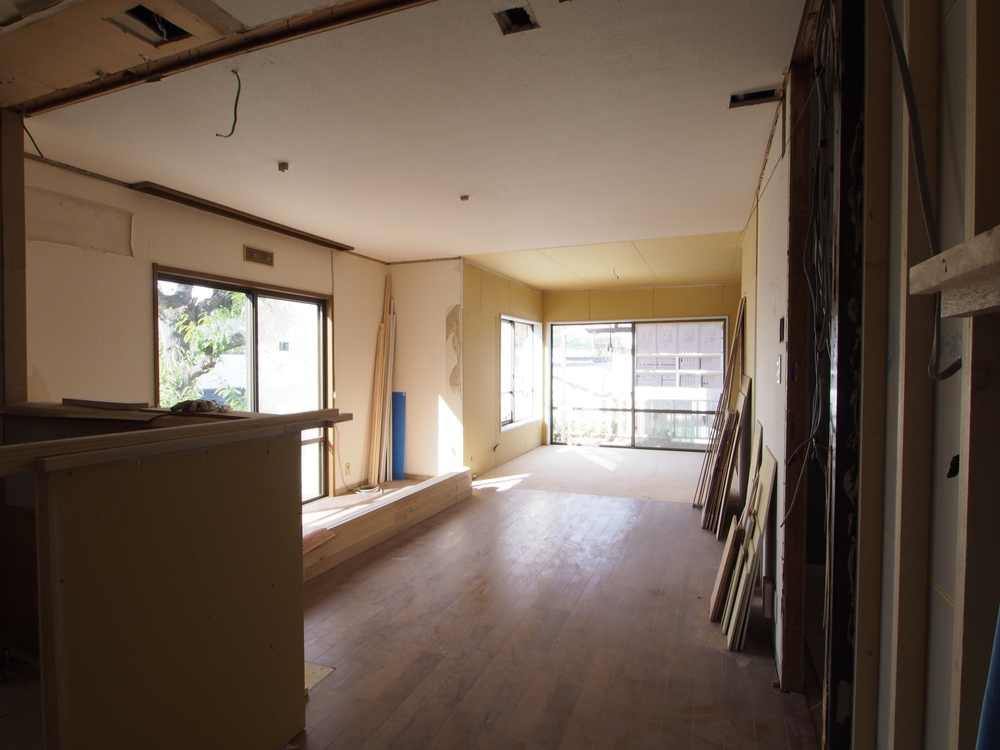 リビングの施工中