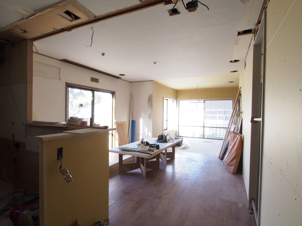 リビングの施工中