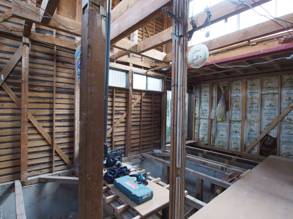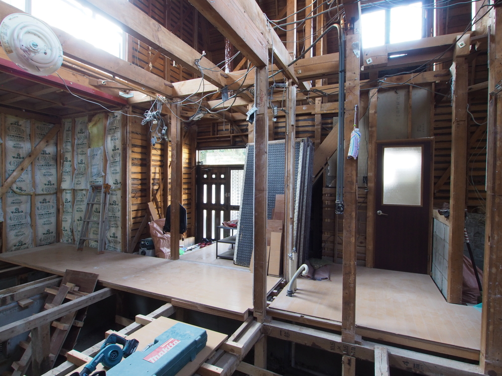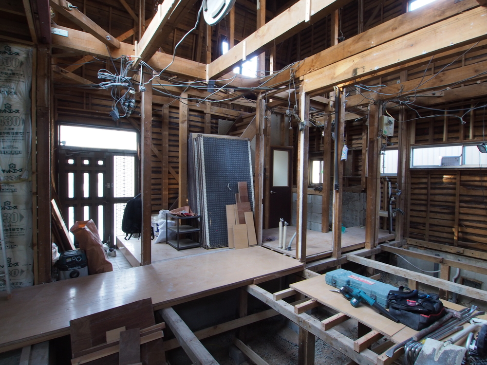 リビングの施工中