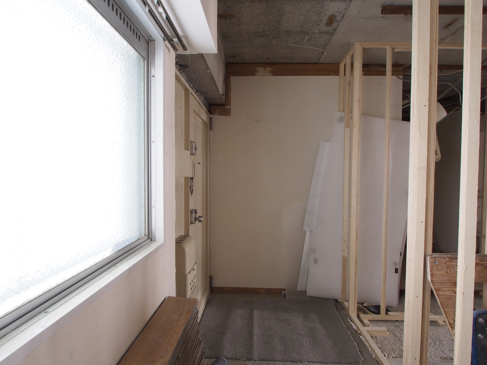玄関の施工中