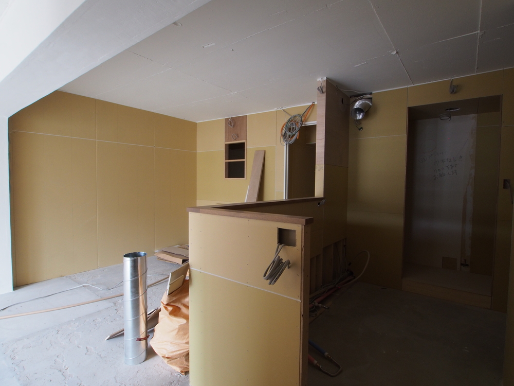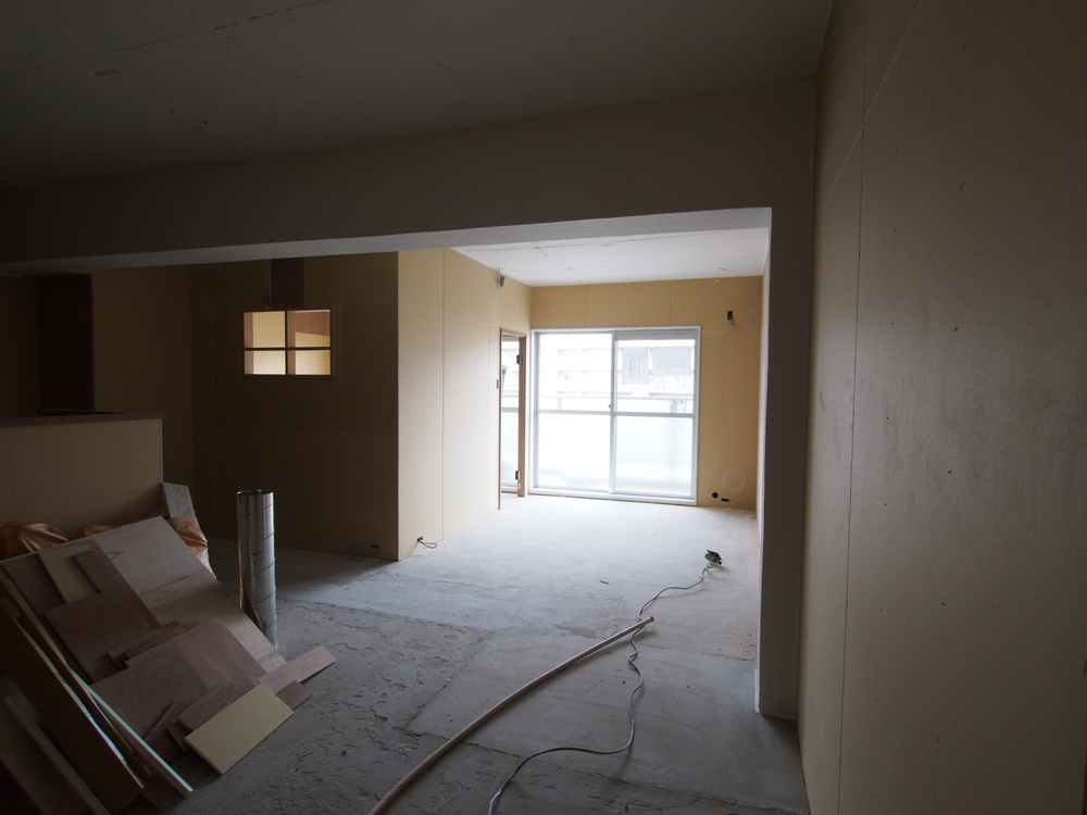 リビングの施工中