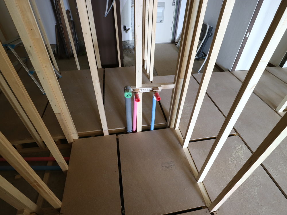 洗面室の施工中