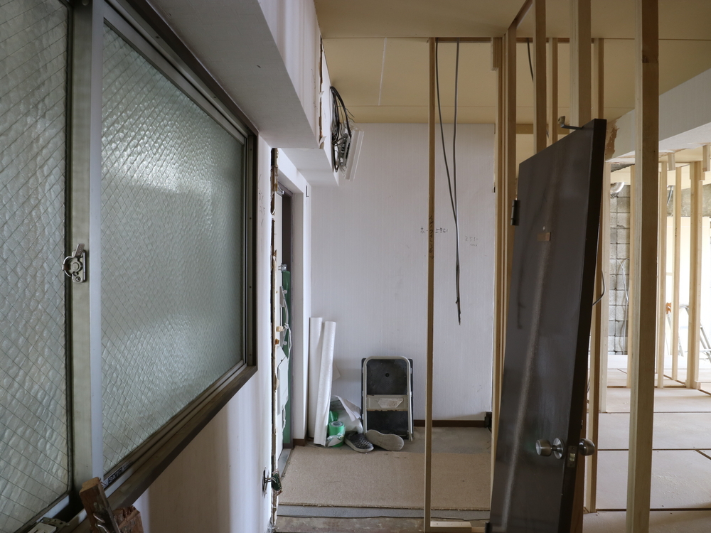 玄関の施工中