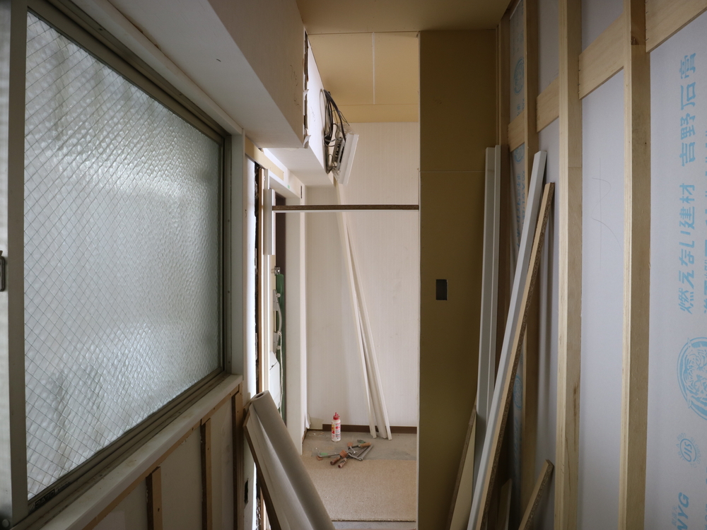 玄関の施工中