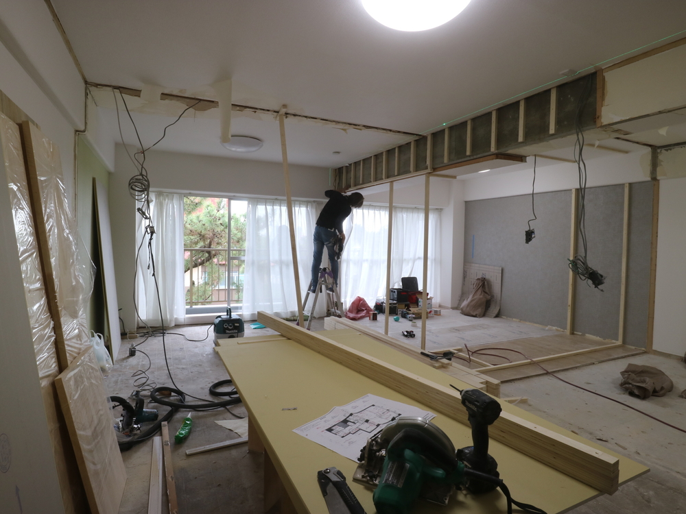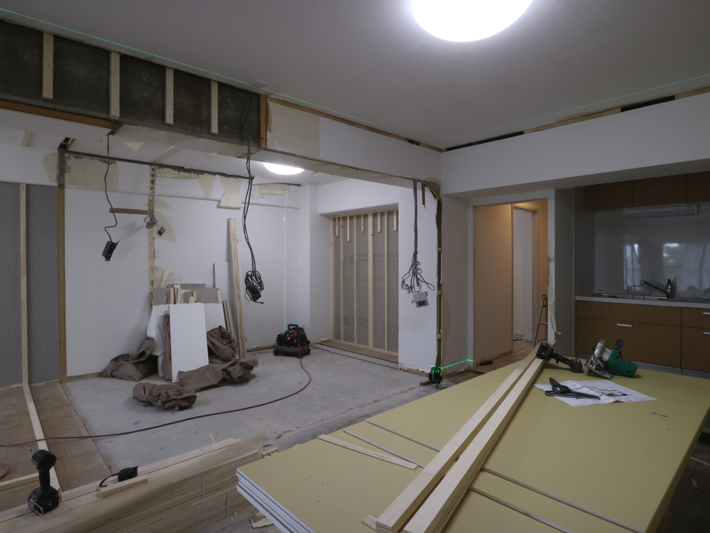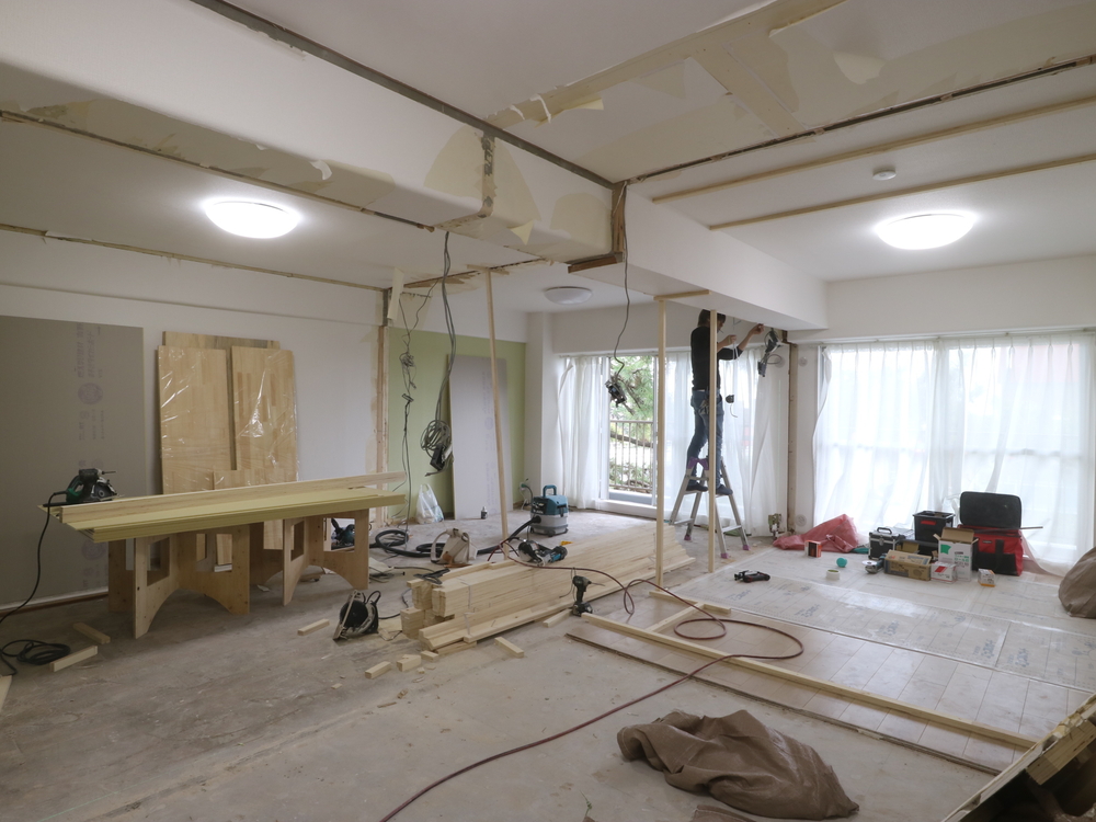 リビングの施工中