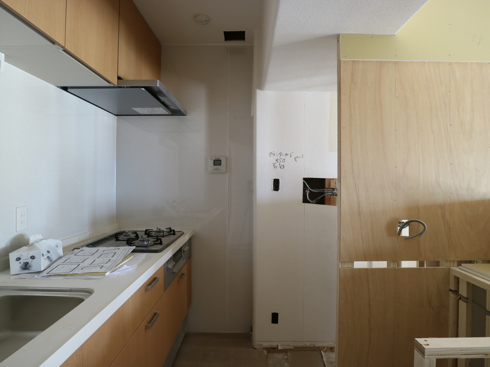 キッチンスペースの施工中