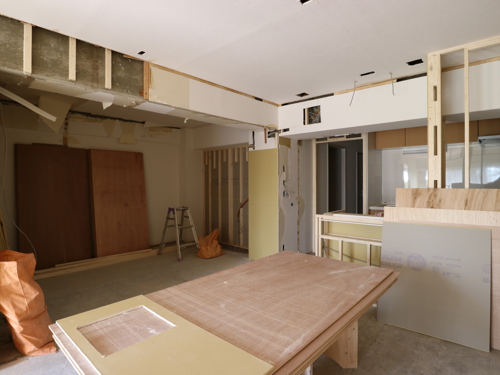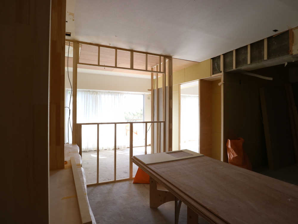 リビングの施工中