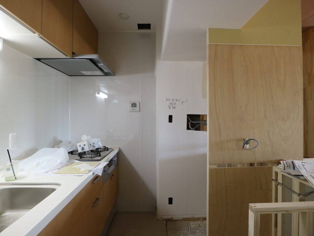 キッチンスペースの施工中