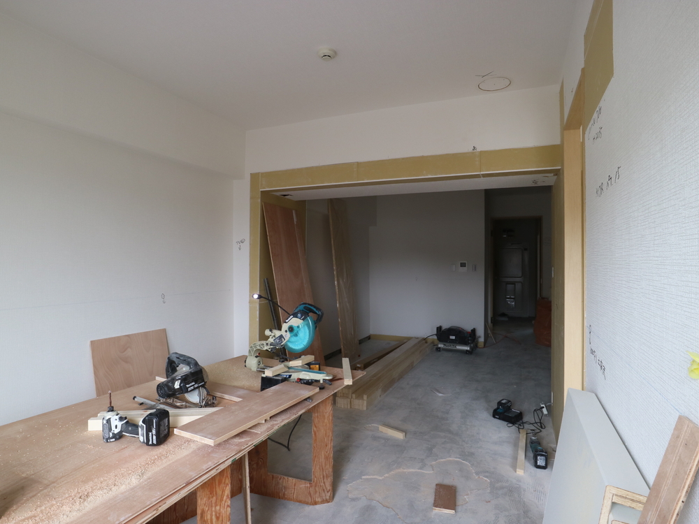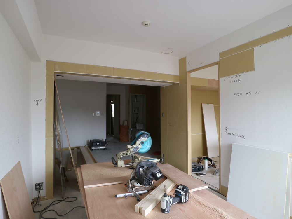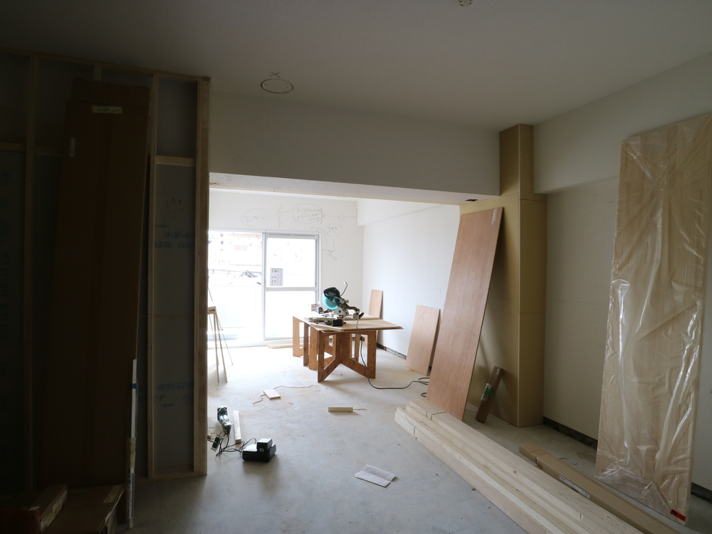リビングの施工中