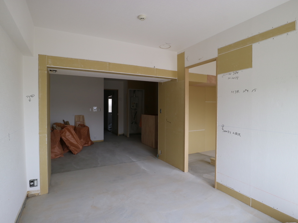 リビングの施工中