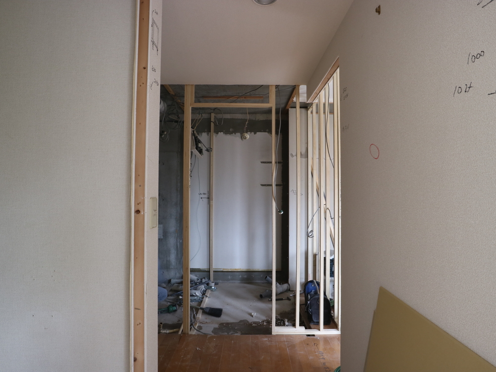 廊下の施工中