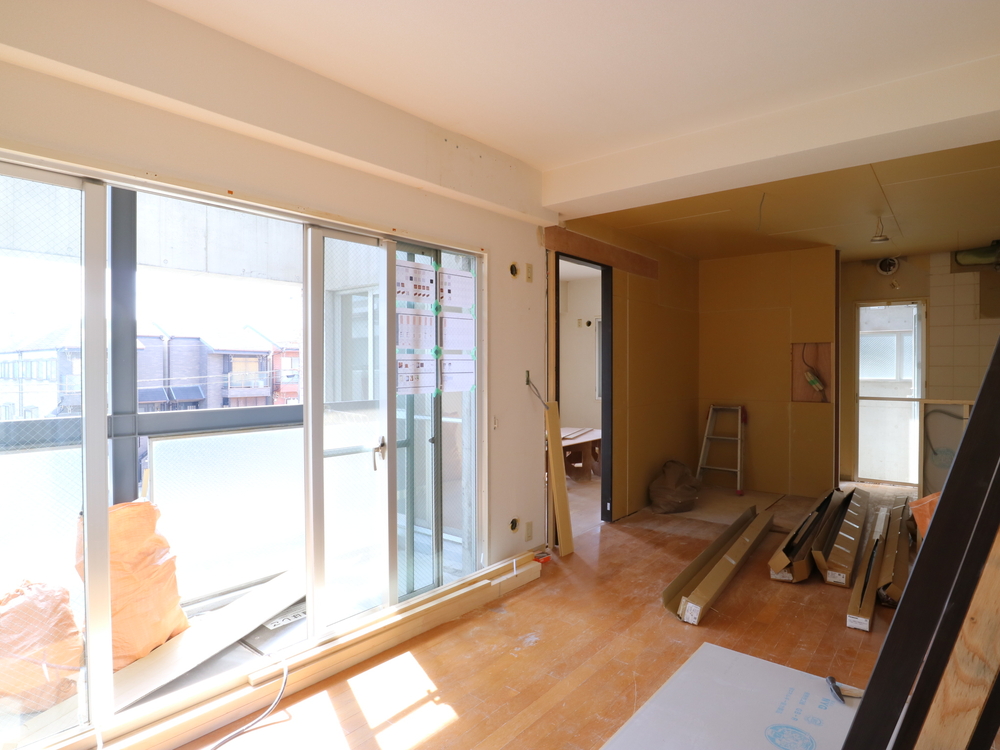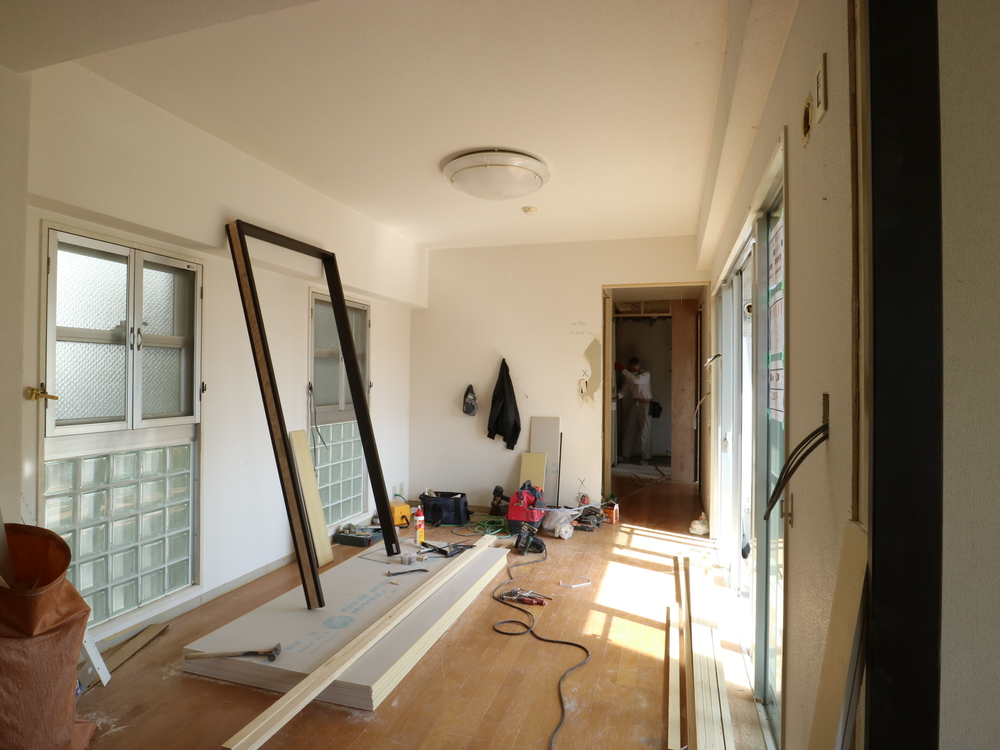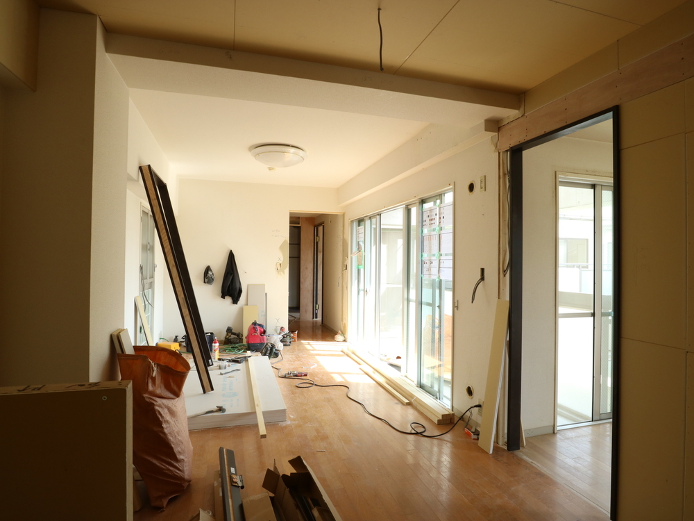 リビングの施工中
