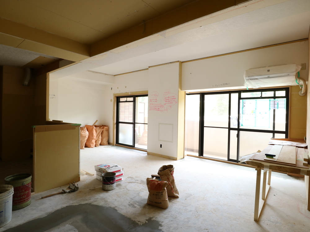 リビングの施工中