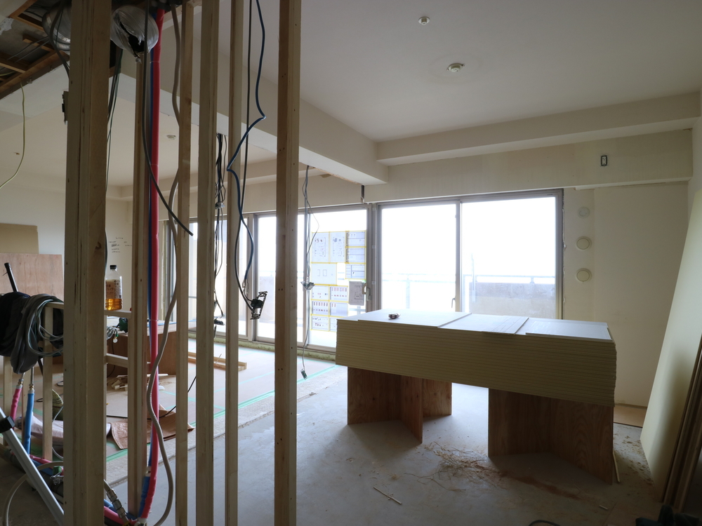 リビングの施工中