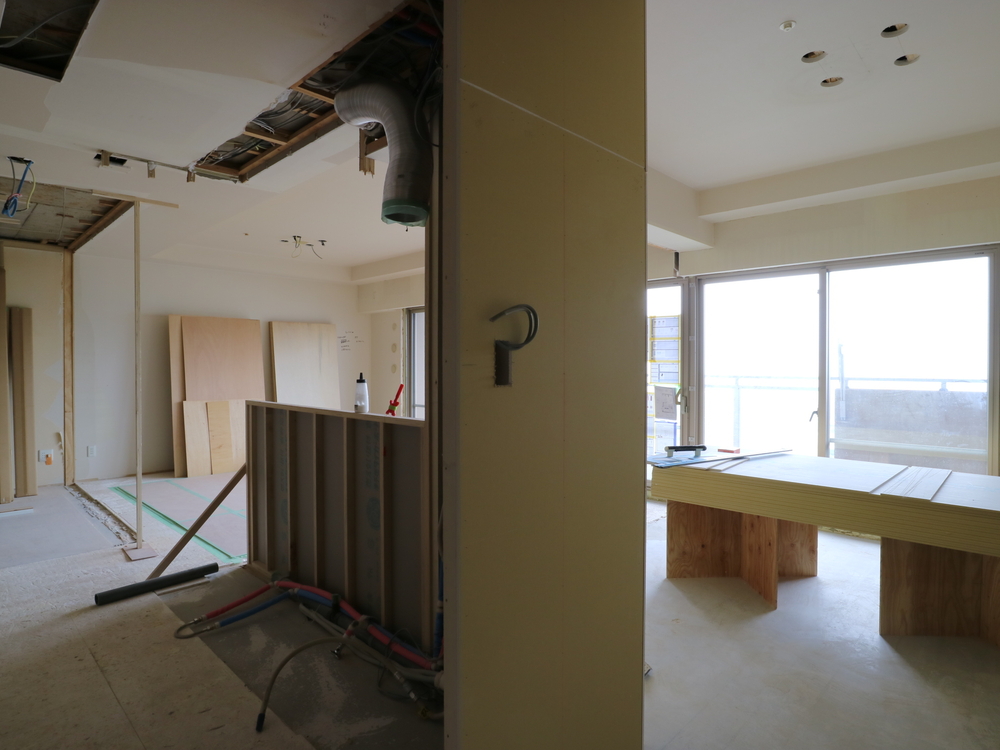 リビングの施工中