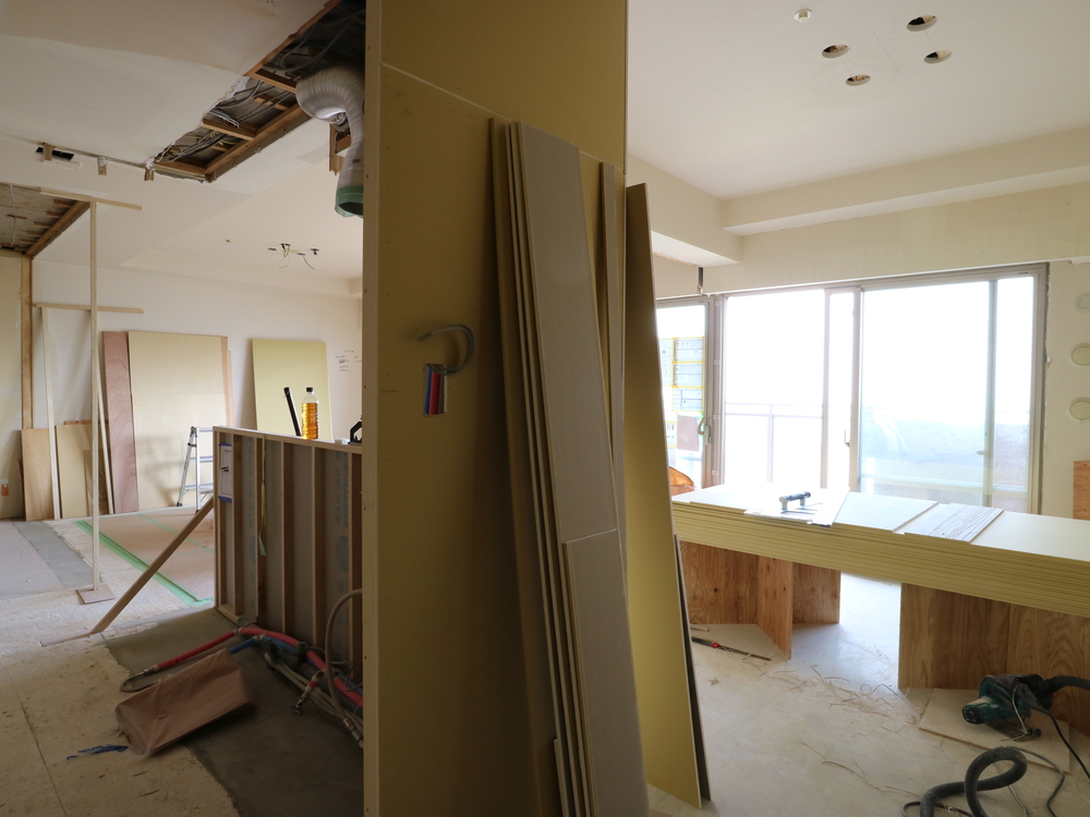 リビングの施工中