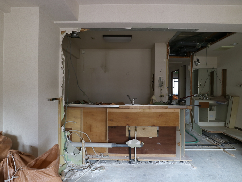 キッチンスペースの施工中