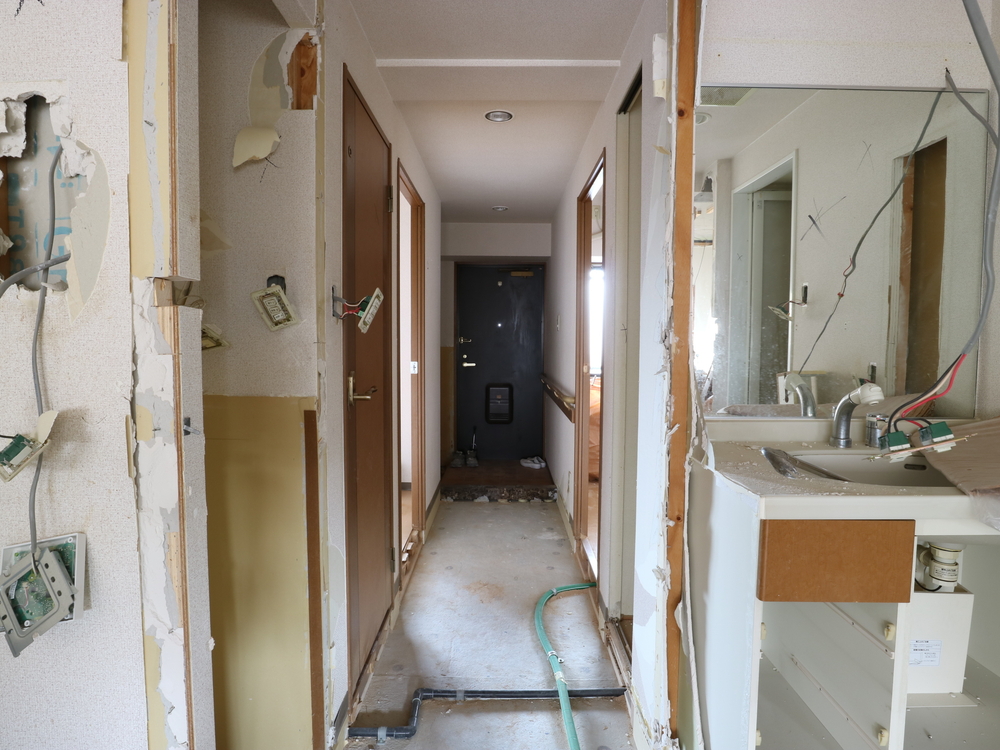 廊下の施工中