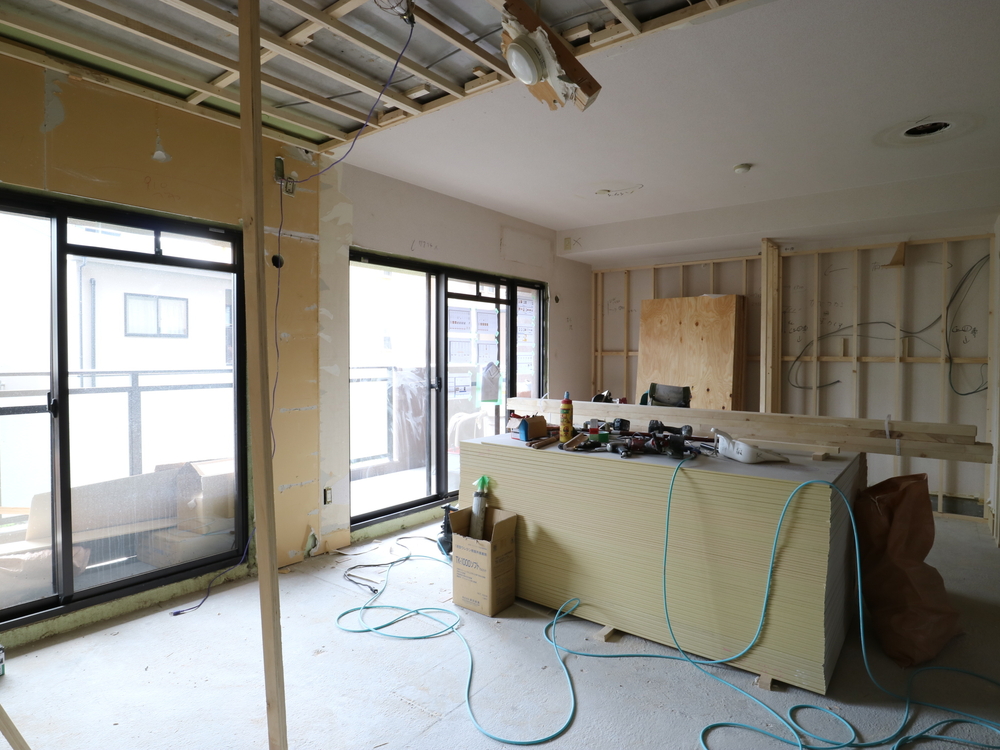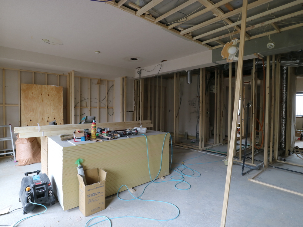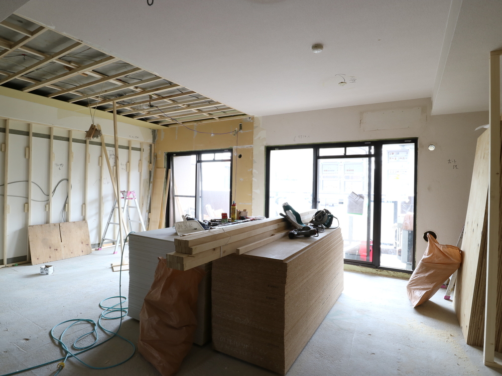 リビングの施工中
