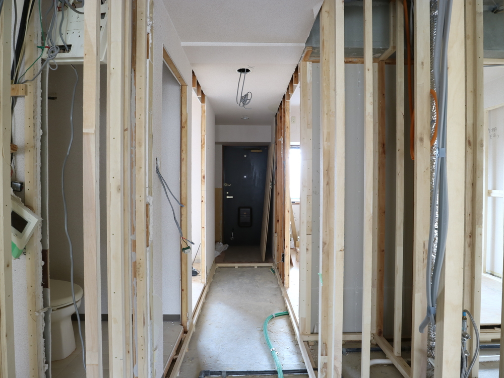 廊下の施工中