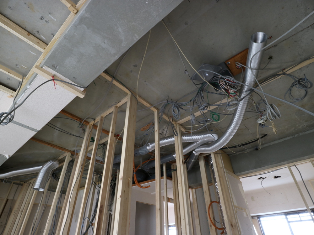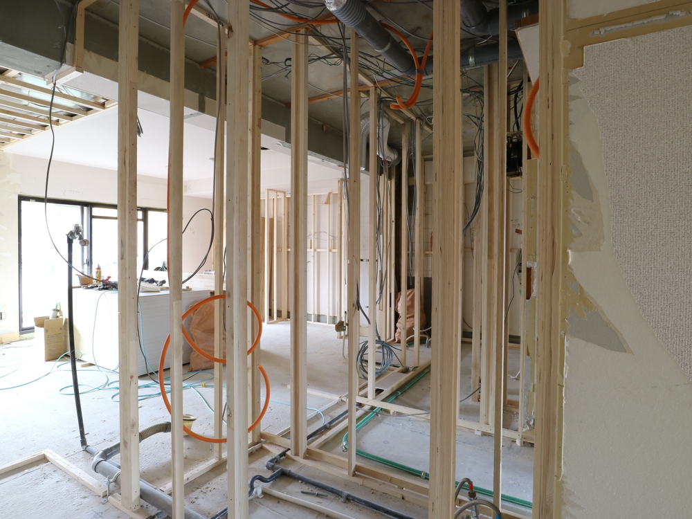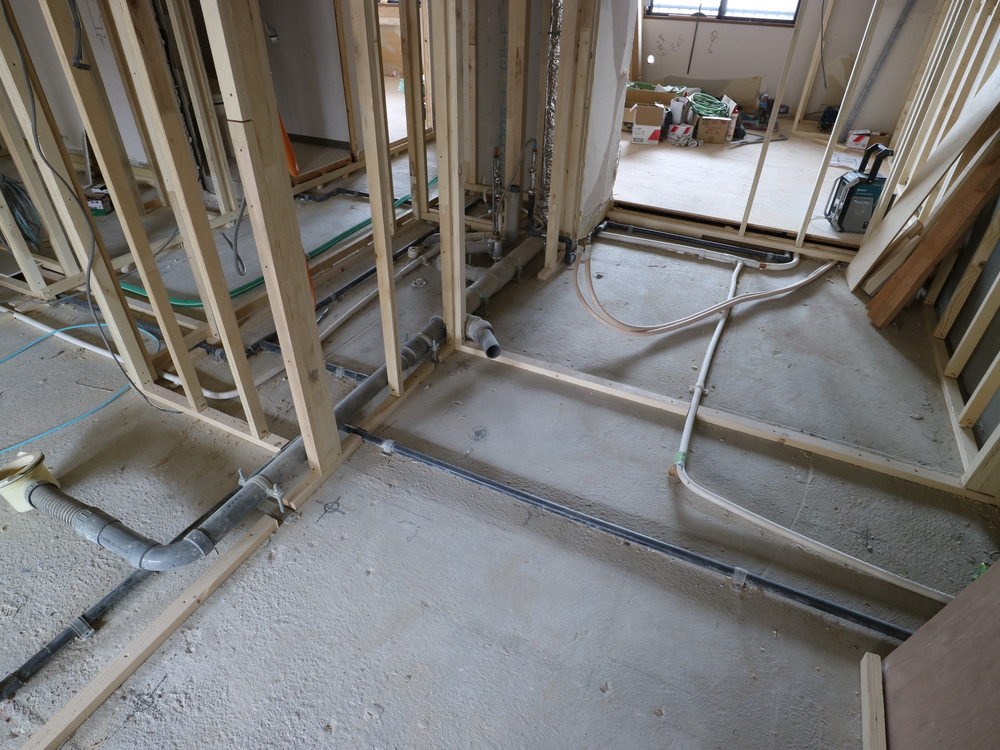 洗面室の施工中