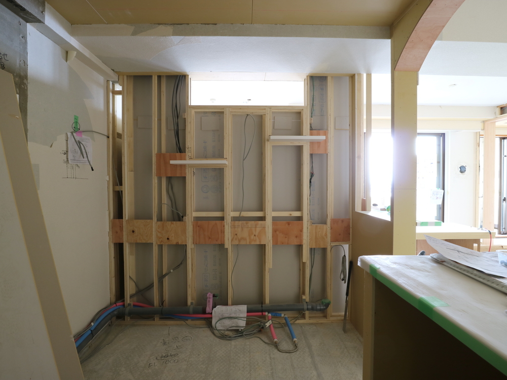 キッチンスペースの施工中