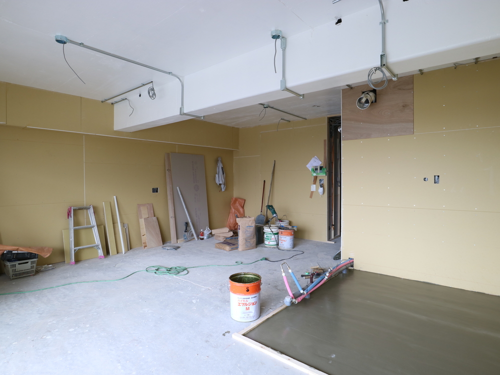 リビングの施工中