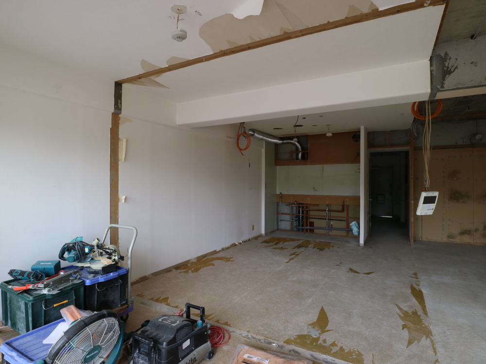リビングの施工中