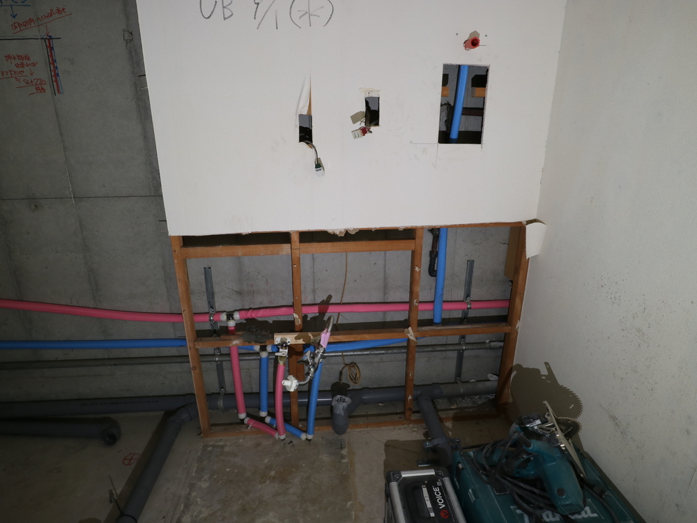 洗面室の施工中