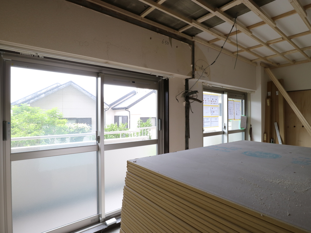 リビングの施工中