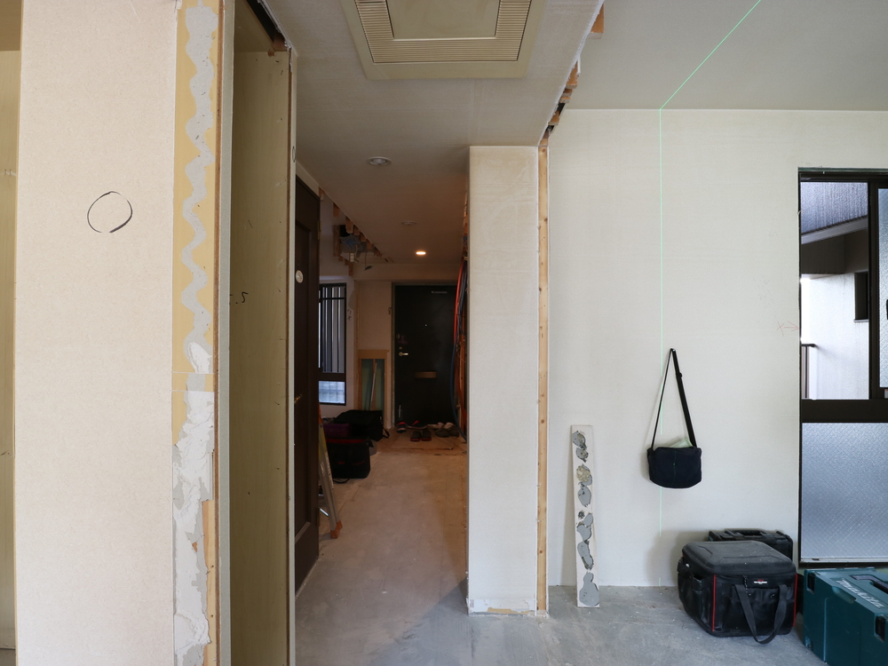 廊下の施工中