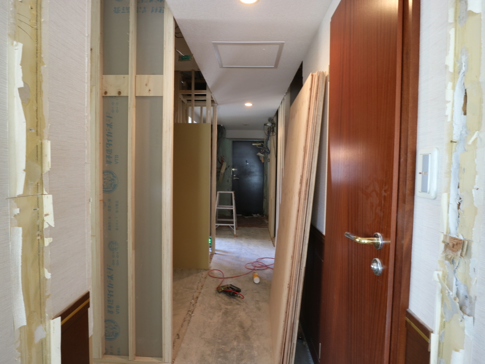 廊下の施工中
