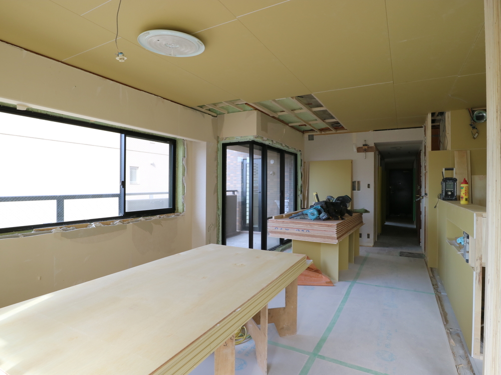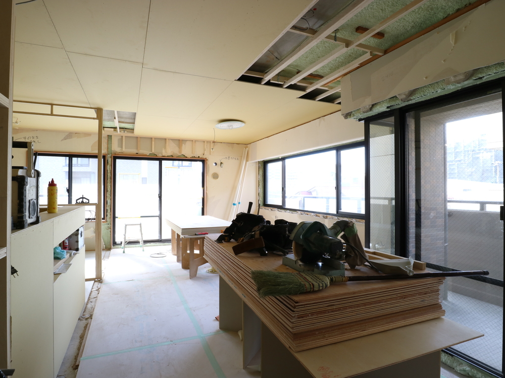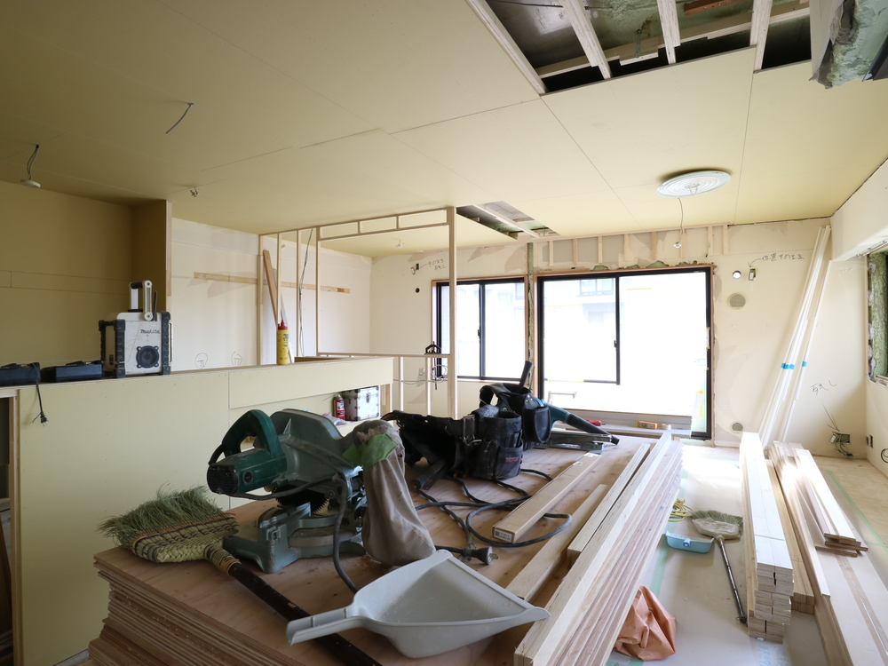 リビングの施工中