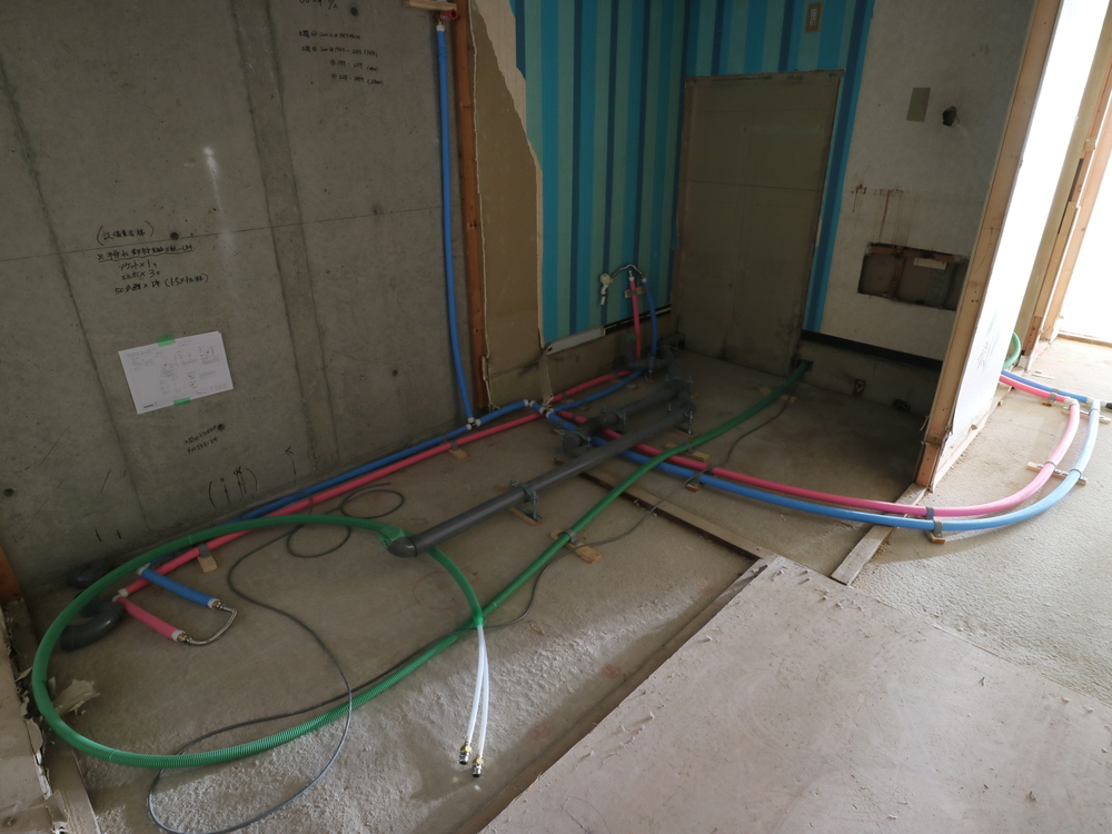 洗面室の施工中