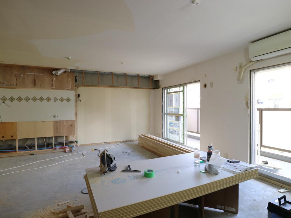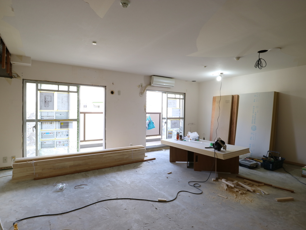 リビングの施工中
