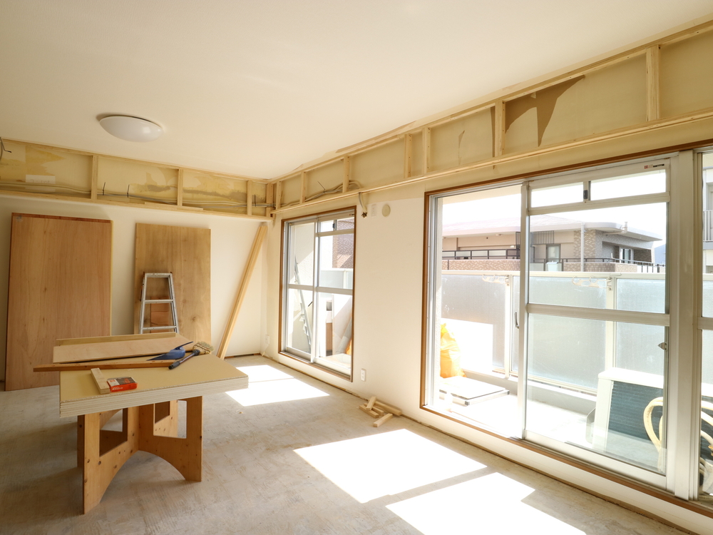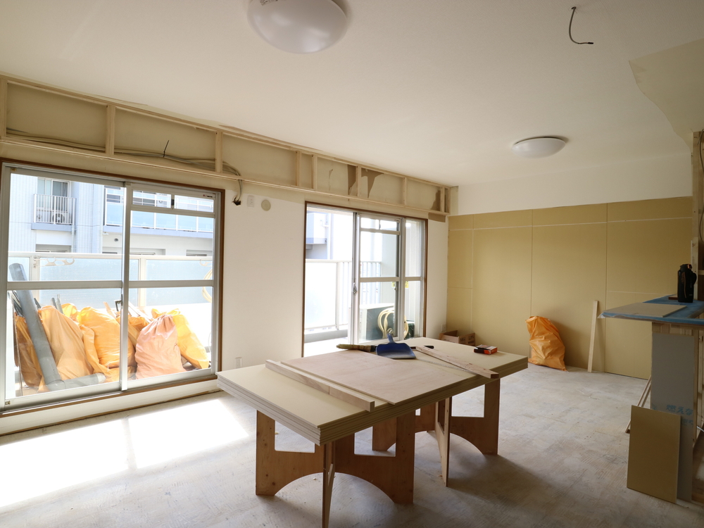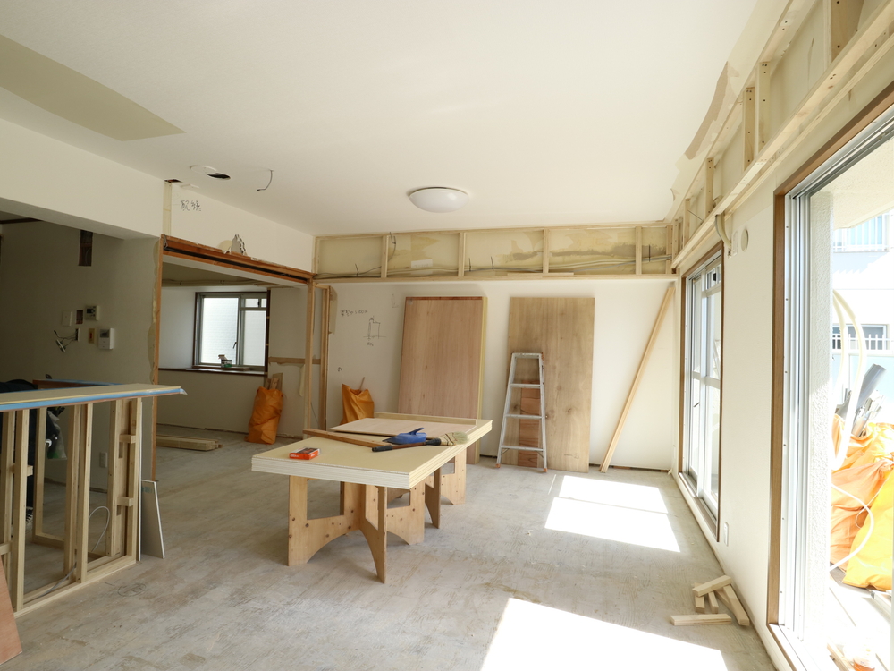 リビングの施工中