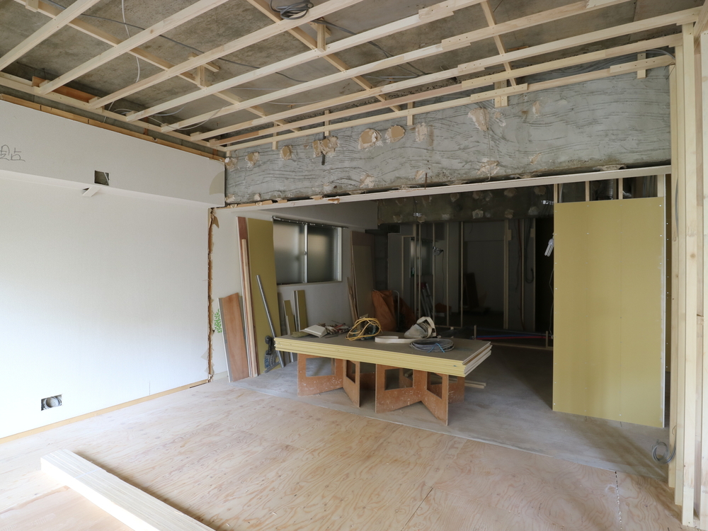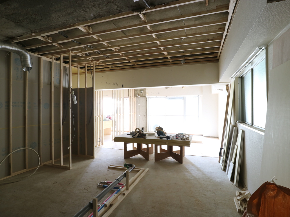 リビングの施工中