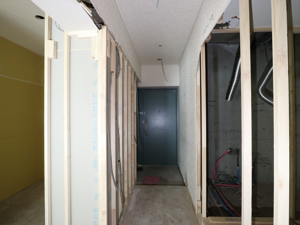 廊下の施工中